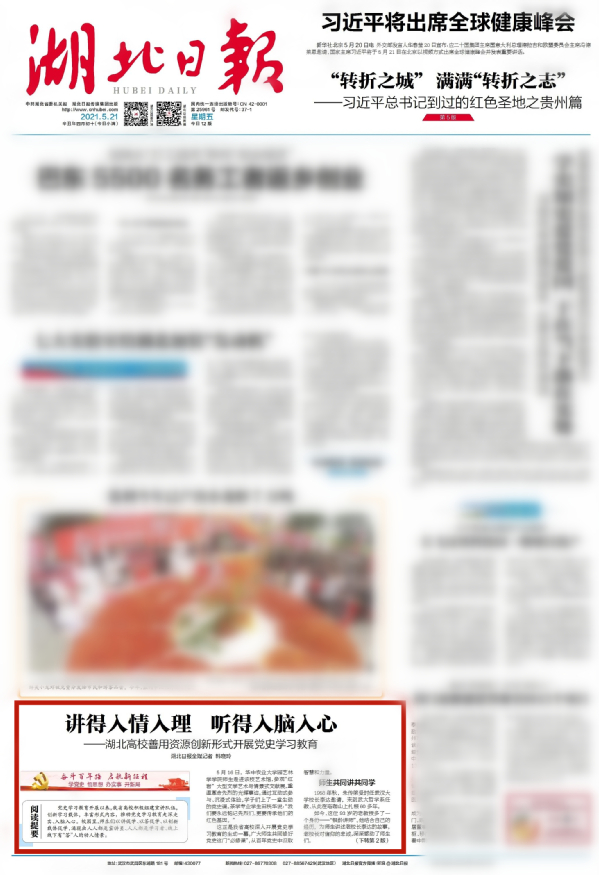 湖北日报要闻版倒头条 (点击图片即可阅读全文)