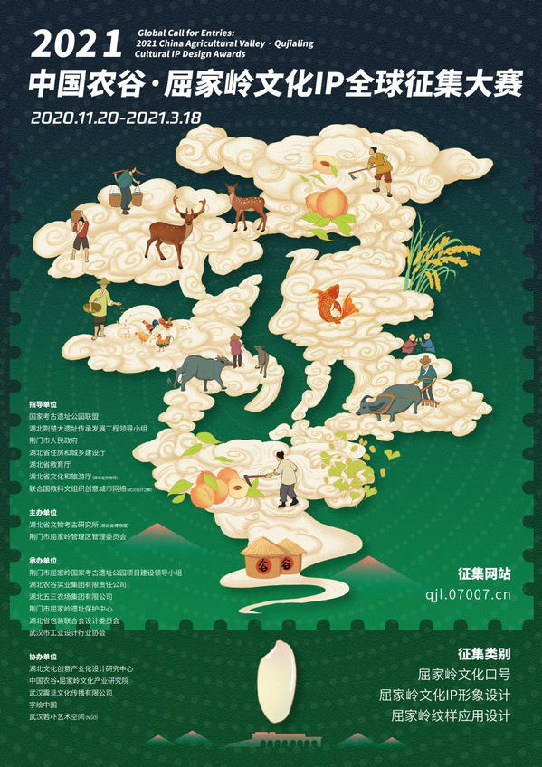 图为教师组一等奖作品《中国农谷·屈家岭文化IP全球征集海报设计》 作者:何轩 张亮