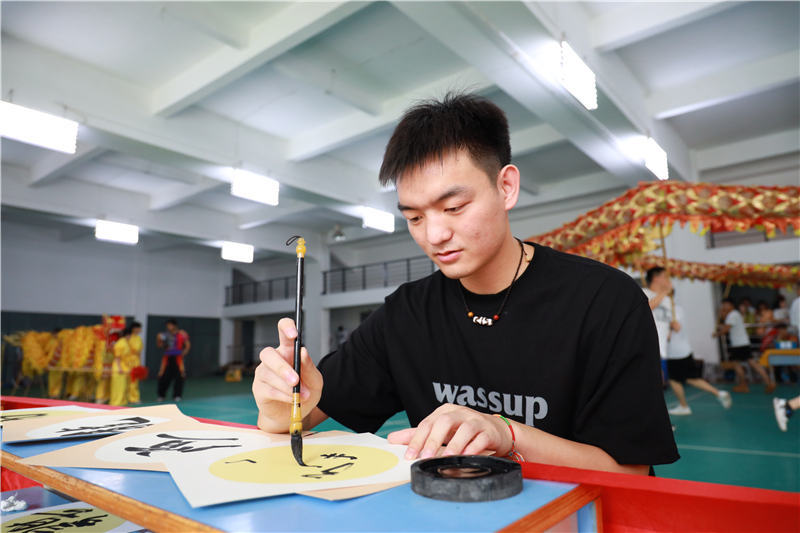 该校2017级学生严书格,凭借着对国学经典的浓厚兴趣,陆续参与了学校的龙舟文化节、国学夏令营、论语学习班等系列活动。他在担任校社联主席期间,积极引导学校博闻国学社、逸墨书画协会、精英龙狮社等传统文化社团,将各种丰富多彩的传统文化活动办得如火如荼,为学校营造了浓厚的传统文化氛围。