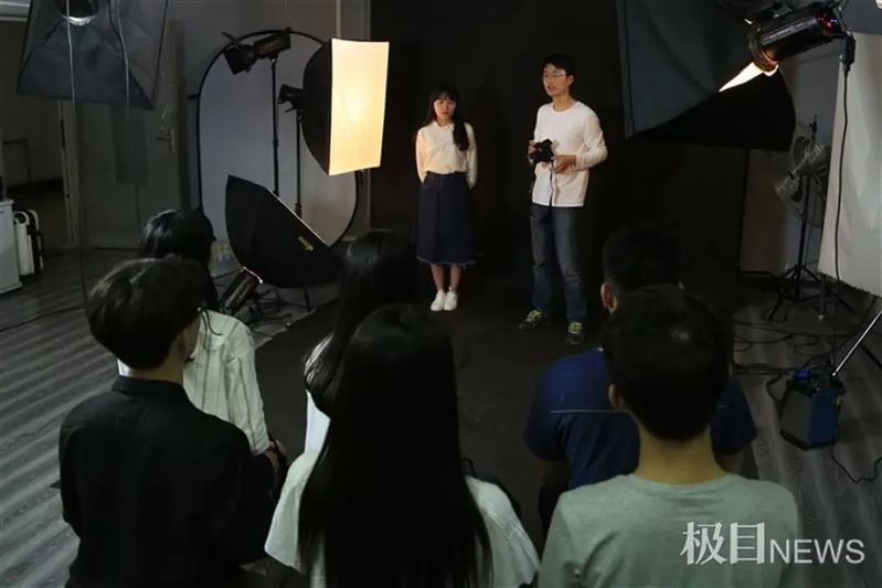 图为牛学老师为学校校园媒体记者上摄影培训课 摄影:施柳