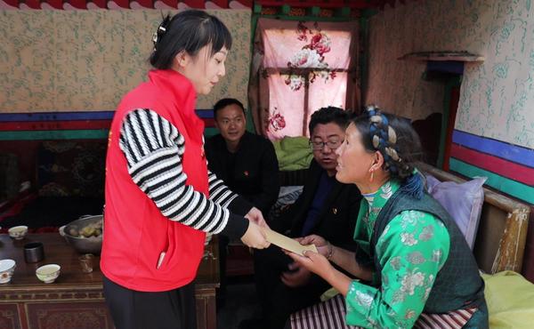 五年级学生顿珠加措性格比较内向,学习非常认真,母亲一个人拉扯他艰难度日,家里的生计主要依靠母亲手工编织氆氇维持。家里陈设极为简单,最醒目的就是顿珠加措获得“汉语言成绩进步奖”的两张奖状。见到志愿者们来了,母亲脸上泛开了笑意,立刻拿出酥油茶热情招待。经过和李淑雯老师的一番交流,孩子母亲万分感动,“我一定会支持孩子上学,让他长大后回报社会,感谢党和国家帮扶我们脱贫,也感谢你们支持这里的教育工作。”