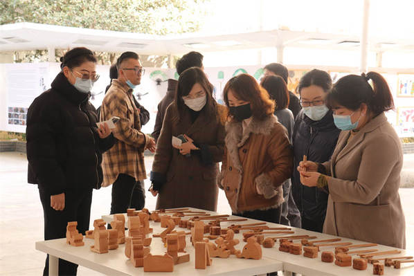 艺术学院的一些师生还现场向观众介绍传统手工艺品的悠久历史、制作工艺等,让观众们在欣赏精美手工艺品的同时,能够学习“非遗”的文化内涵,感受其中的艺术魅力。