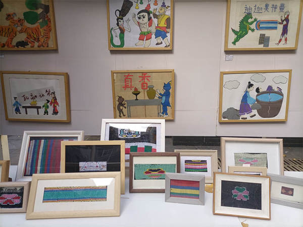 学生手工制作的皮影和西兰卡普。谢佳摄