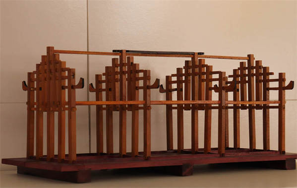 学生制作的土家族吊脚楼模型。辜莹莹摄