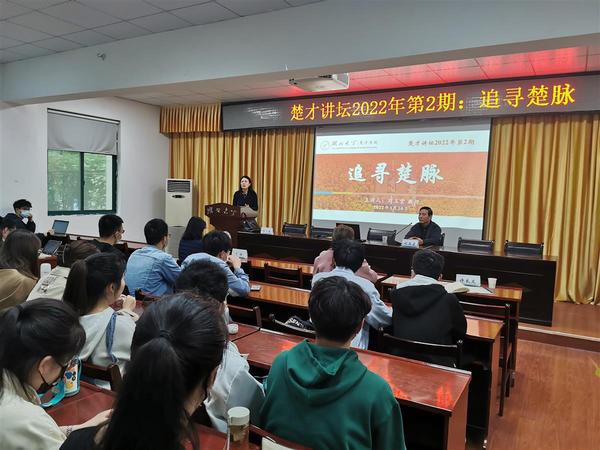 “筚路蓝缕”的进取精神、“大象无形”的开放气度、“一鸣惊人”的创新意识、“上善若水”的和谐理念、“九死未悔”的爱国情结、“一诺千金”的诚信品格……学生们聚精会神地聆听。互动交流环节中,刘玉堂还应学生的要求,推荐了《荆楚文库》《世纪楚学》《中国地域文化通览·湖北卷》《楚脉千秋》等书目。