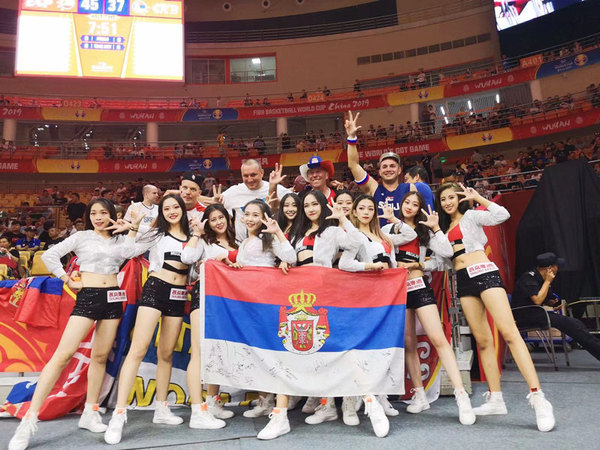 李欣然(左二)参加啦啦操联赛。